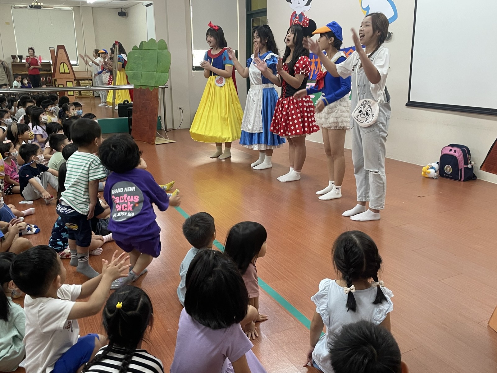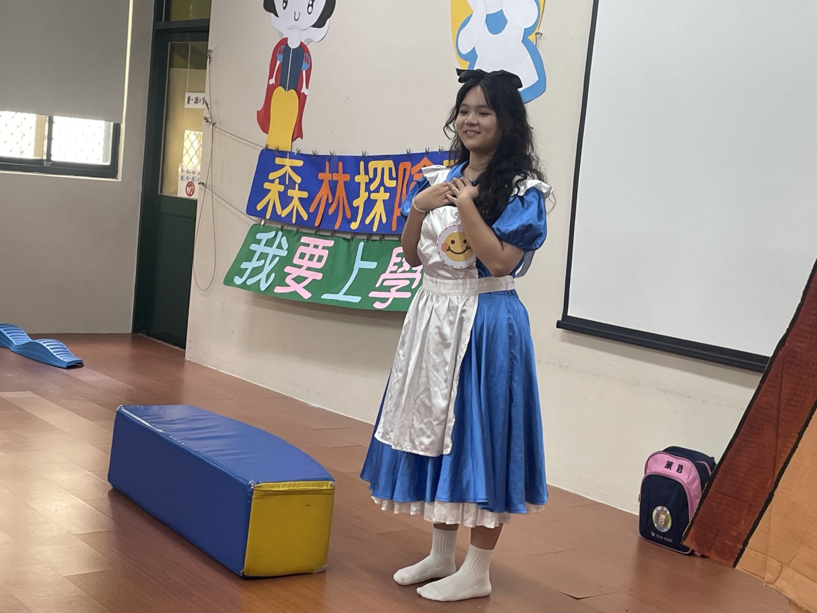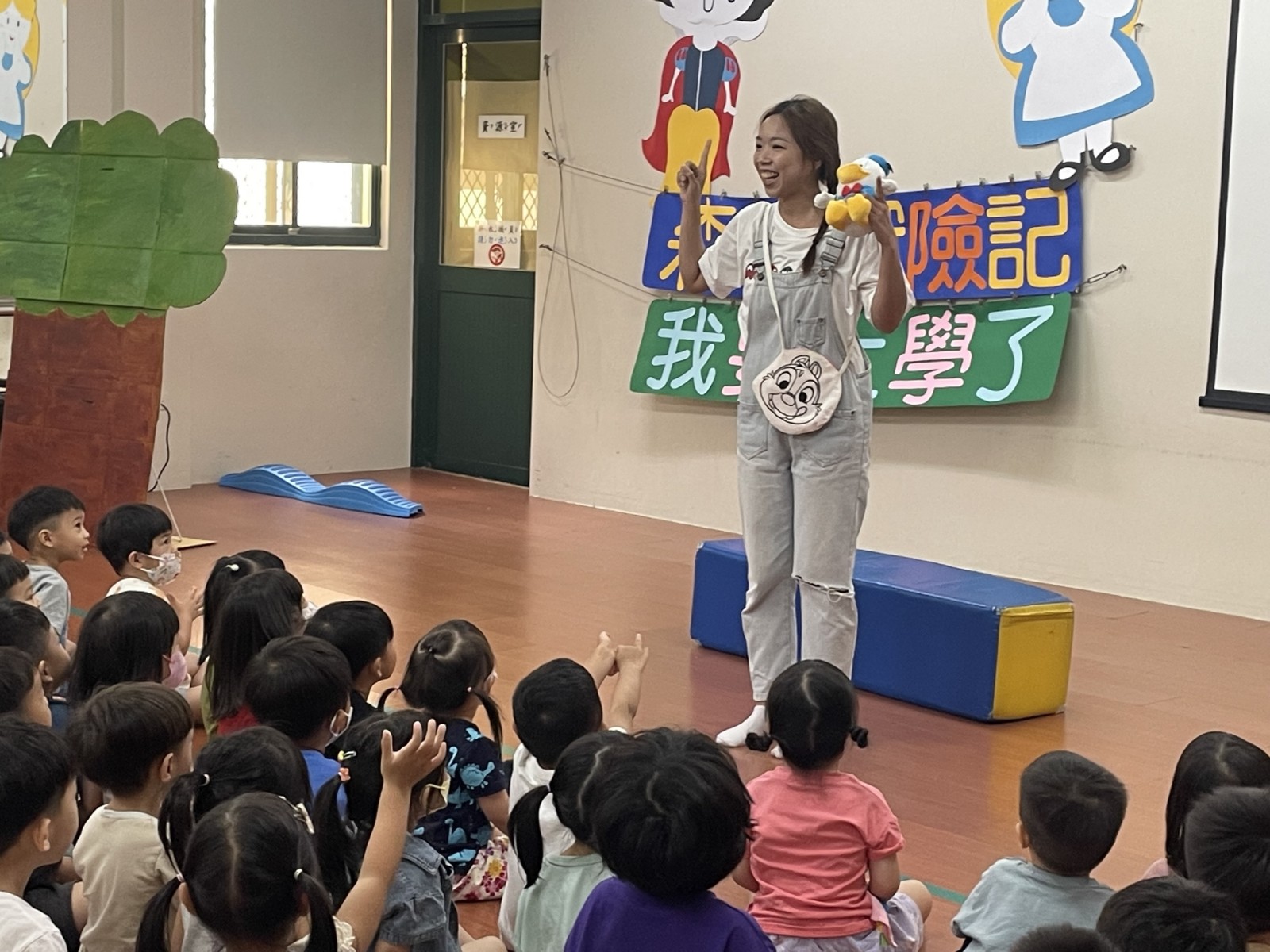 萊恩為了第一次上學的寶貝們準備了勇敢上學去的戲劇演出.藉由各種角色的幫忙一起收集笑容 勇氣 友愛.讓寶貝們上學的路上增添更多樂趣