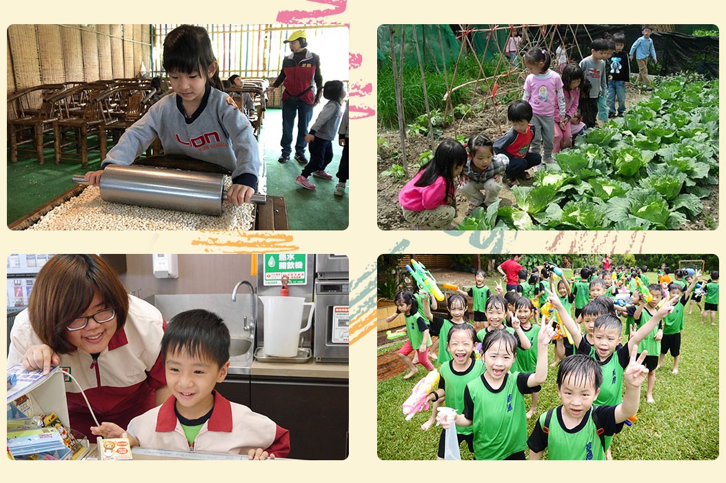 配合主題教學課程,讓孩子走出教室,運用社區資源,豐富的自然環境素材,帶著孩子不斷與自然相遇,創造一個又一個的驚喜!